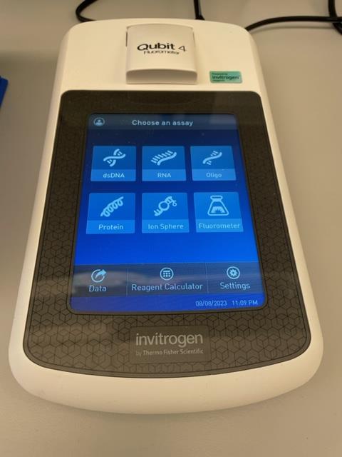 Invitrogen's Qubit 4 is a fluorometer which accurately measures the concentration of DNA and RNA.